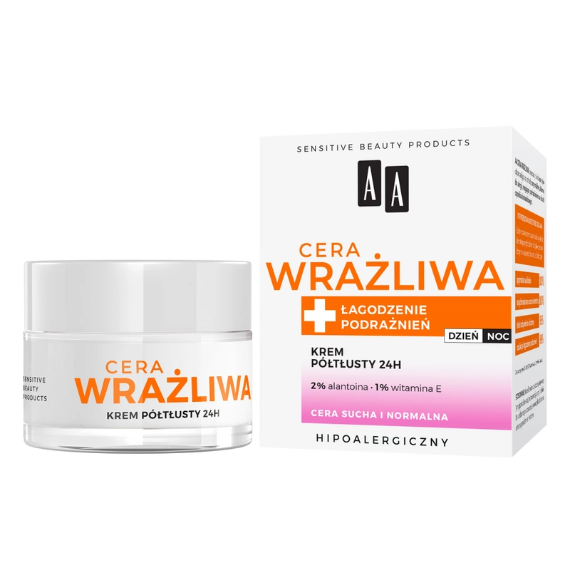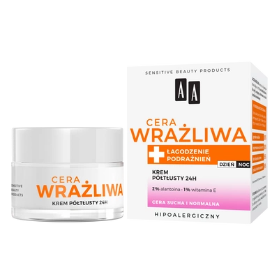 AA Cera Wrażliwa Krem półtłusty 24 h do cery suchej i normalnej na dzień i noc 50 ml