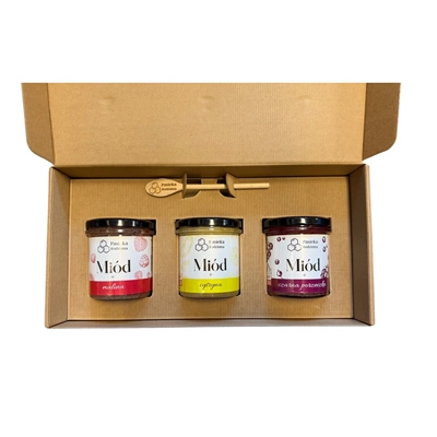 Pasieka Rodzinna zestaw prezentowy miód malina, cytryna, czarna porzeczka 3 x 240 g