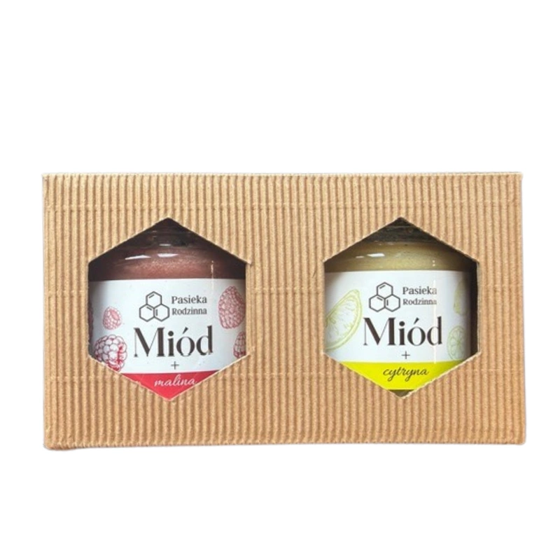 Pasieka Rodzinna zestaw prezentowy miód cytrynowy i malinowy 2 x 240 g