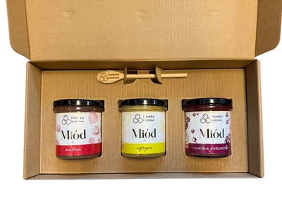 - Zestaw 3 miodów w opakowaniu prezentowym