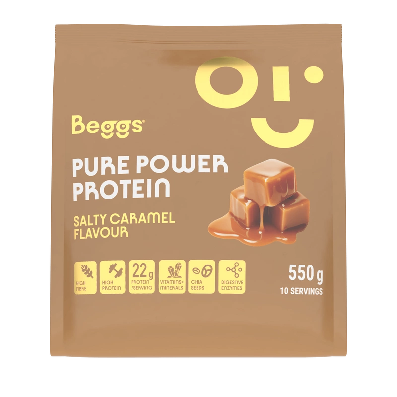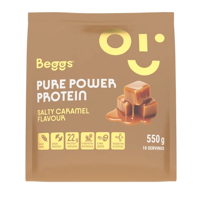 Dlaczego warto wybrać Beggs Pure Power Protein? Beggs Pure Power Protein o smaku słonego karmelu to wysokiej jakości napój proteinowy w proszku przeznaczony dla osób prowadzących aktywny tryb życia. Zawiera koncentrat białka serwatkowego WPC80 o wysokiej zawartości białka, które wspomaga wzrost i utrzymanie masy mięśniowej1. Połączenie nasion chia, białka wraz z witaminami (C, D) i wapniem wspomaga zdrowie i witalność2,3. Mieszanka jest uzupełniona enzymami trawiennymi DigeZyme®, które pomagają rozkładać cząsteczki w pożywieniu na mniejsze składniki, które organizm może lepiej wchłonąć i wykorzystać. Beggs Pure Power Protein jest idealny jako szybka i pożywna przekąska, po treningu lub w dowolnym momencie dnia, kiedy potrzebujesz uzupełnić białko i inne niezbędne składniki odżywcze.