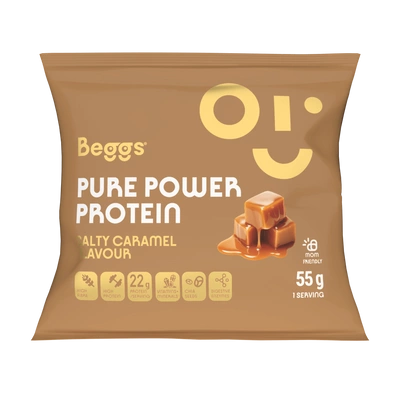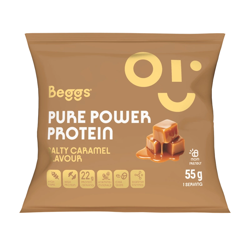 Dlaczego warto wybrać Beggs Pure Power Protein? Beggs Pure Power Protein o smaku słonego karmelu to wysokiej jakości napój proteinowy w proszku przeznaczony dla osób prowadzących aktywny tryb życia. Zawiera koncentrat białka serwatkowego WPC80 o wysokiej zawartości białka, które wspomaga wzrost i utrzymanie masy mięśniowej1. Połączenie nasion chia, białka wraz z witaminami (C, D) i wapniem wspomaga zdrowie i witalność2,3. Mieszanka jest uzupełniona enzymami trawiennymi DigeZyme®, które pomagają rozkładać cząsteczki w pożywieniu na mniejsze składniki, które organizm może lepiej wchłonąć i wykorzystać. Beggs Pure Power Protein jest idealny jako szybka i pożywna przekąska, po treningu lub w dowolnym momencie dnia, kiedy potrzebujesz uzupełnić białko i inne niezbędne składniki odżywcze.