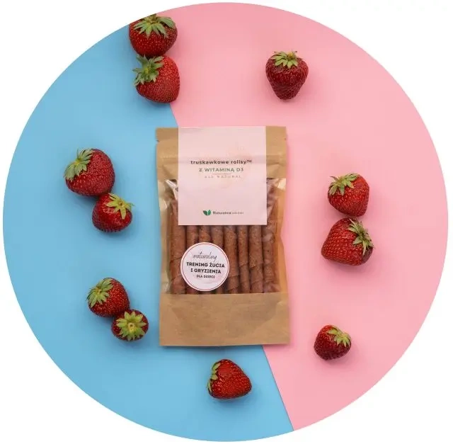 - Dzięki swojej strukturze witaminowe rollsy™ w naturalny sposób wspierają trening żucia i gryzienia u dzieci.