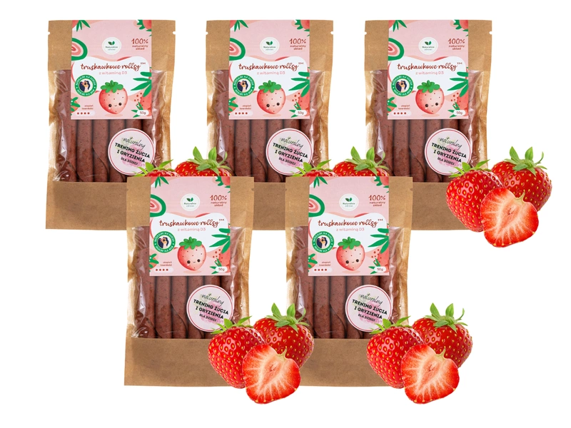 - 100% naturalne witaminowe rollsy™ truskawkowe wzbogacone o witaminę D3 z lanoliny.