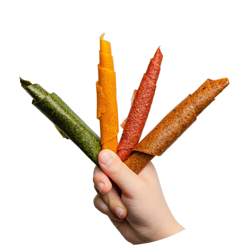 100% naturalne witaminowe rollsy™ rabarbarowe z nutką mięty – naturalne źródło luteiny dla wsparcia zdrowego wzroku. Suszony rabarbar i mięta to pyszna i odżywcza porcja warzyw i owoców dla małych i dużych. Dzięki swojej strukturze witaminowe rollsy™ w naturalny sposób wspierają trening żucia i gryzienia u dzieci. Gryzienie i żucie twardych pokarmów jest bardzo ważne już od początku rozszerzania diety dziecka. #treningzuciaigryzienia Różne kolory i struktury witaminowych rollsów™ oraz to jak zmieniają swoją konsystencję po przeżuciu (robią się “glutowate” a później zupełnie się rozpuszczają) sprawia, że są przyjaznym ćwiczeniem w terapii karmienia dla dzieci z nadwrażliwością dotykową jamy ustnej oraz w terapii integracji sensorycznej. W każdym opakowaniu znajduje się 5-8 witaminowych rollsów™ (50g).