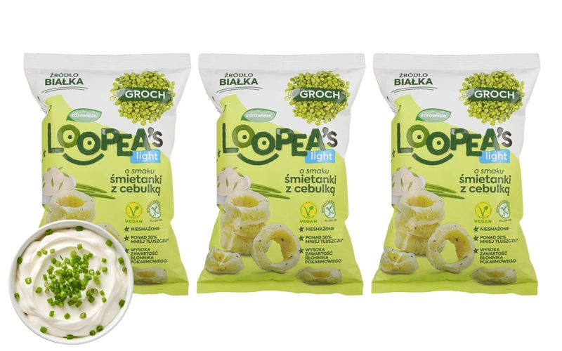 Loopea's chrupki z grochu o smaku śmietanki z zieloną cebulką ZESTAW 3 x 50 g