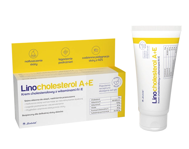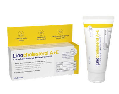 - Linocholesterol A+E krem cholesterolowy z witaminami A i E natłuszcza i pozostawia na skórze film ochronny, czyniąc ją bardziej odporną na utratę wody z naskórka
