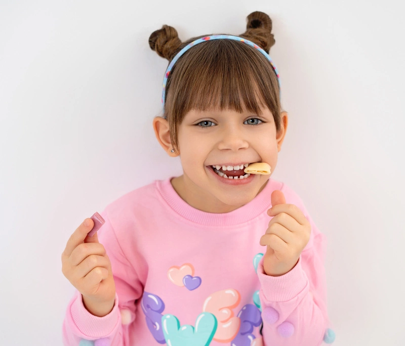 Dzięki swojej miękkiej, sprężystej strukturze Gumirollsy™ wspierają rozwój umiejętności żucia i gryzienia u dzieci. To ważny element prawidłowego rozwoju jamy ustnej już od najmłodszych lat.