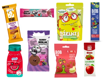 Przekąski zawierające jedynie owoce. Nie zawierają dodatku cukrów, bezglutenowe, wytworzone z naturalnych składników, bez konserwantów