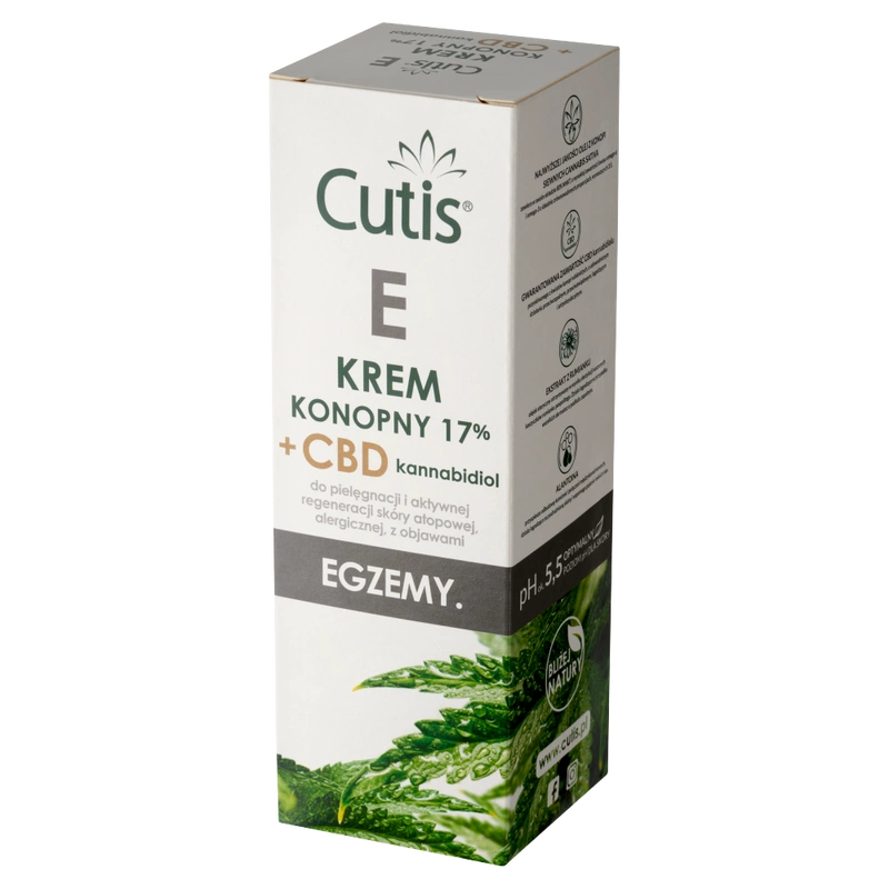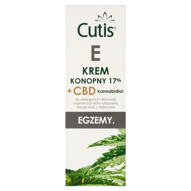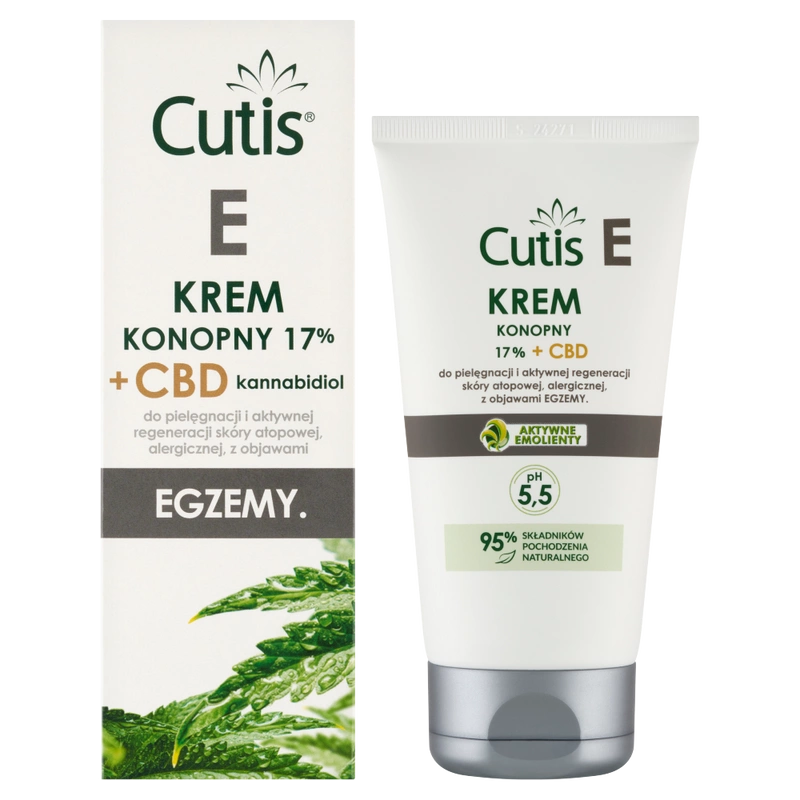 - Cutis E-Egzema, krem konopny 17% + CBD do regeneracji skóry atopowej, alergicznej i z objawami egzemy.