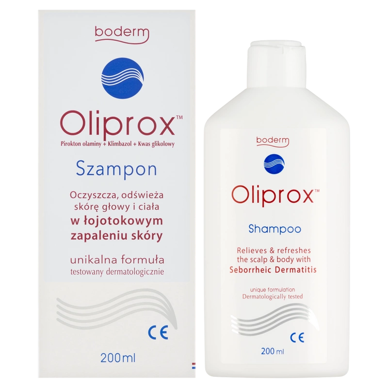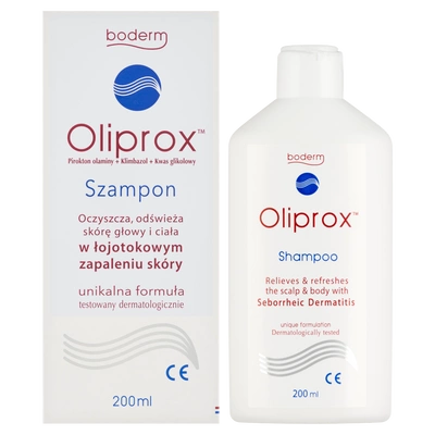 - Oliprox Szampon, do stosowania w łojotokowym zapaleniu skóry głowy i ciała.