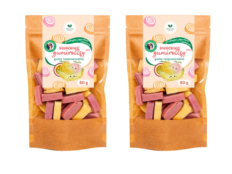 Gumirollsy NATURALNE gumy rozpuszczalne zdrowa guma do żucia ZESTAW 2 x 80 g