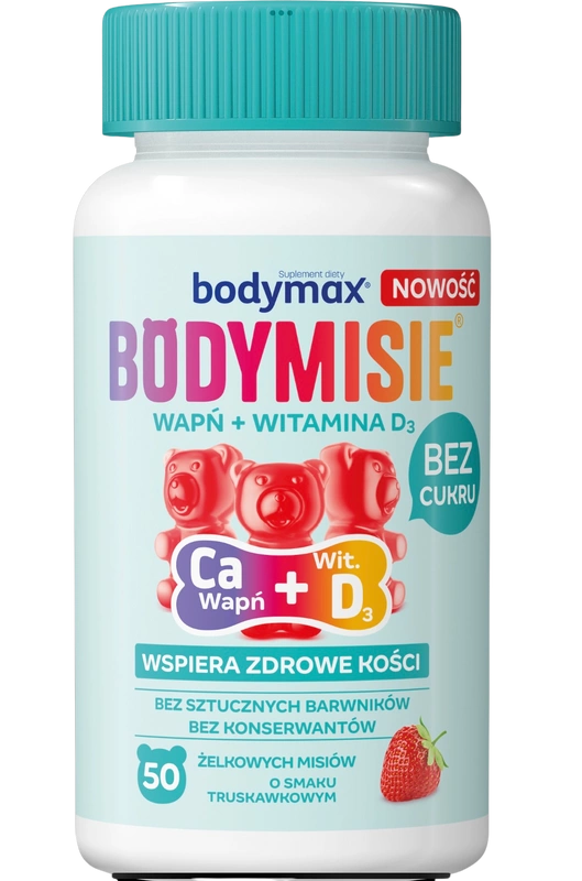 - Bodymisie to nie tylko smaczne żelki, o wyśmienitym truskawkowym smaku, ale przede wszystkim suplement z wapniem i witaminą D3, który jest odpowiedni dla dzieci od 3. roku życia, młodzieży i dorosłych.
