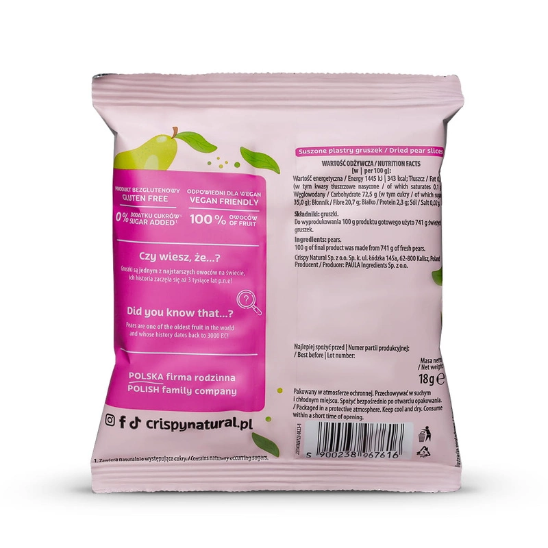 Crispy Natural Gruszka 100% - Suszone chipsy z gruszki ZESTAW 24 x 18 g