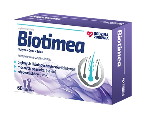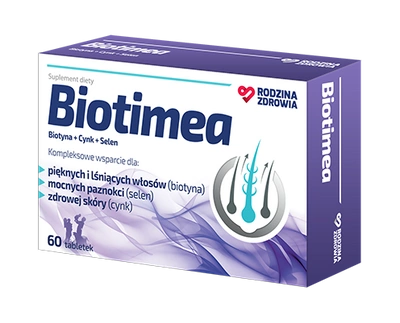 - Rodzina Zdrowia Biotimea polecany jest osobom dorosłym w celu uzupełnienia codziennej diety w biotynę i dwa ważne składniki mineralne: cynk i selen, wpływające na utrzymanie prawidłowego stanu włosów.