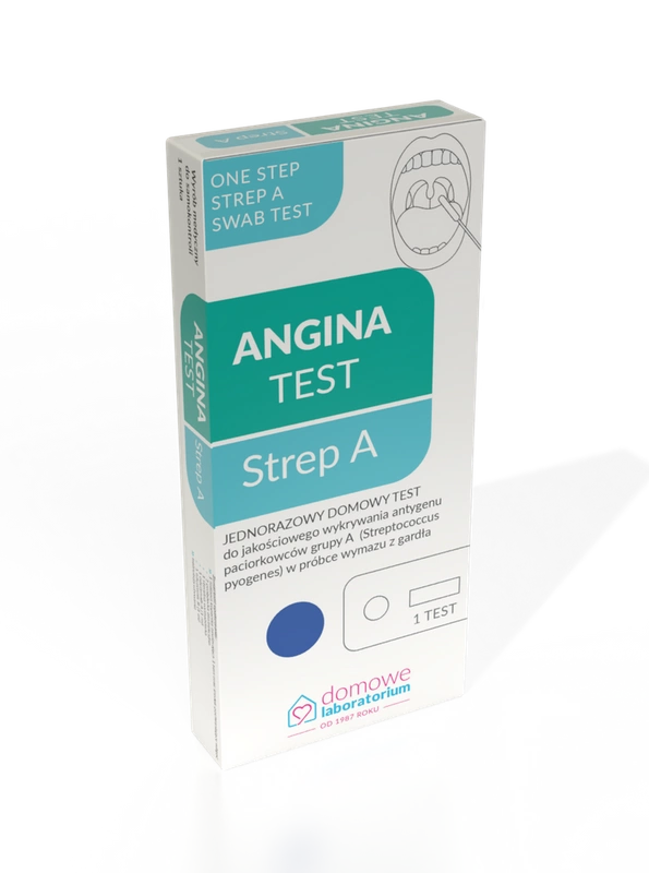 Angina Test Strep A jest szybkim, jednoetapowym testem immunologicznym przepływu bocznego do jakościowego wykrywania antygenu paciorkowców grupy A w próbkach wymazów z gardła, aby pomóc we wczesnym wykryciu zakażeniem paciorkowcami grupy A. Paciorkowce grupy A są jednym z najważniejszych ludzkich patogenów powodujących ostre zapalenie gardła, zapalenie migdałków, liszajca i szkarlatynę. Bardzo ważne jest odróżnienie zakażenia paciorkowcami od innych czynników etiologicznych (np. wirusowych, mykoplazmatycznych lub chlamydiowych), aby można było rozpocząć odpowiednie leczenie. Wczesne rozpoznanie i leczenie zapalenia gardła paciorkowcem grupy A zmniejszy nasilenie objawów i dalsze powikłania, takie jak gorączka reumatyczna i kłębuszkowe zapalenie nerek. Dlatego warto jest mieć test domowy w zasięgu ręki, aby móc wykluczyć inne wirusy nie wymagające leczenia antybiotykami.