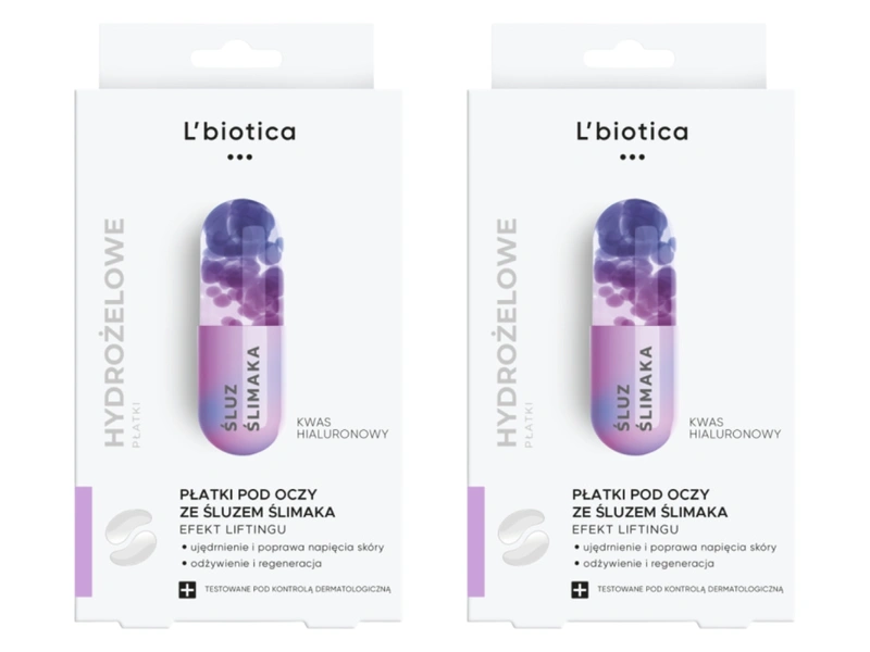 L'Biotica hydrożelowe płatki pod oczy ze śluzem ślimaka odmładzające ZESTAW 2 x 3 sztuki