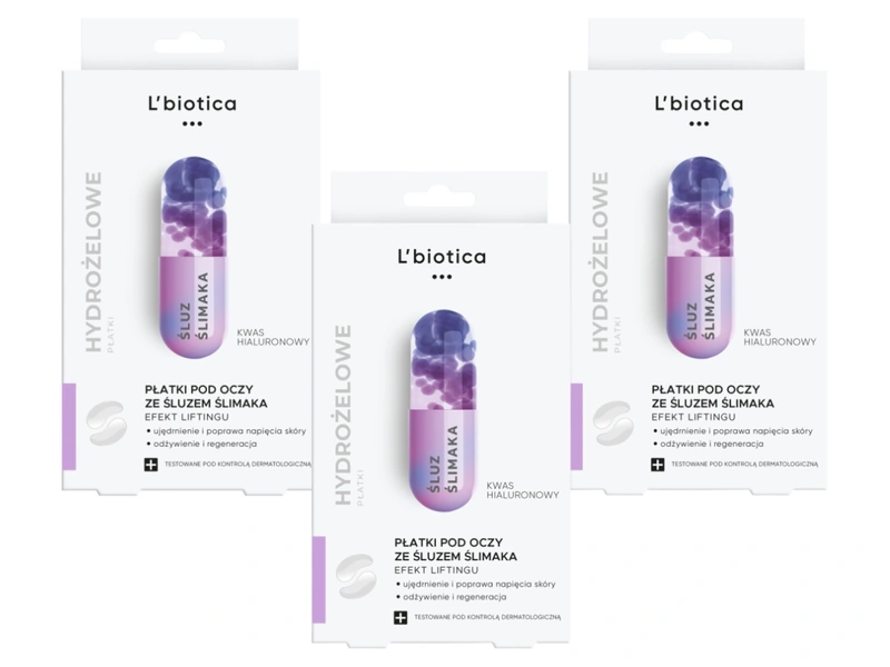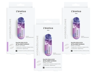 L'Biotica hydrożelowe płatki pod oczy ze śluzem ślimaka odmładzające ZESTAW 3 x 3 sztuki